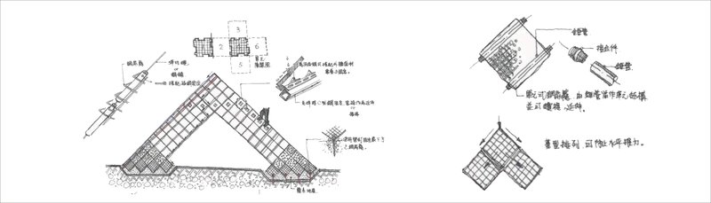 在地生活就地取材,建構屬於舒適的在地環境,簡易的架構,簡單再不過的工法,運用個個零件組合,讓彼此之間有不同的想像,相對穩定也是相對科學。運用石、鐵絲、土壤、植栽、空氣流動冷熱交替等不同條件,創造微型舒適圈。