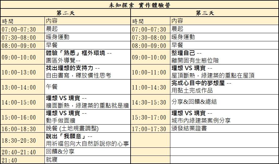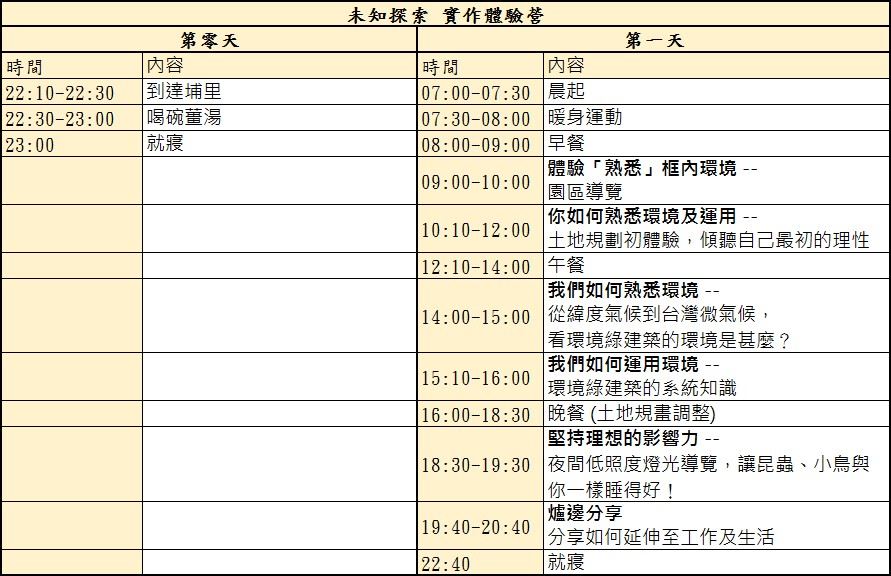 (第零天晚上22:10肯德基、全家集合,第三天下午5點30結束)