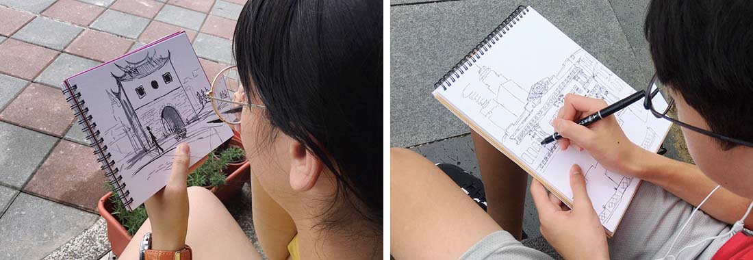 1. 城市速寫:手繪介紹、 帶至戶外觀察環境並自選定區域速寫 。