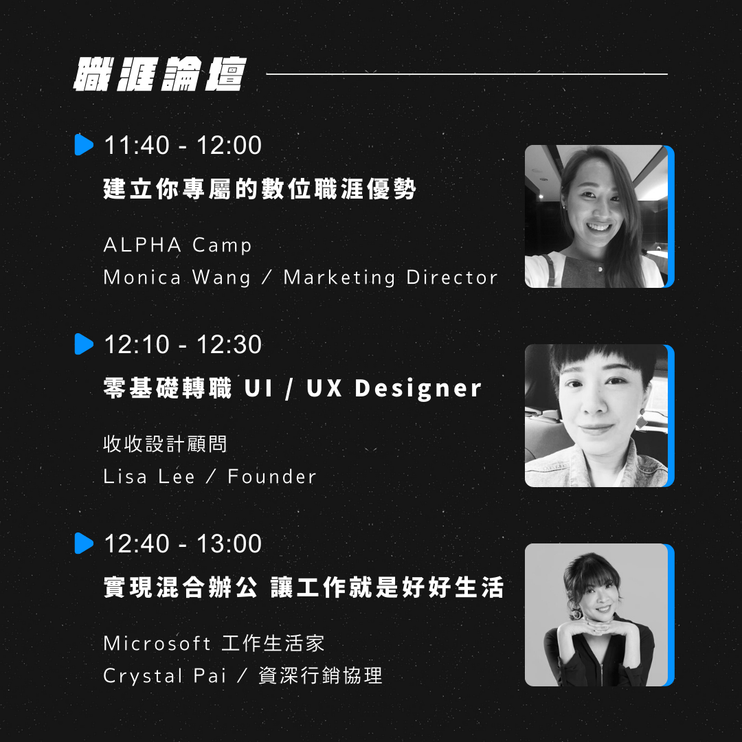 ➤ 如果你不方便到場觀展,我們的職涯論壇提供全程線上直播,請關注我們的粉絲專頁,並設定為「搶先看」,以免錯過相關資訊!
