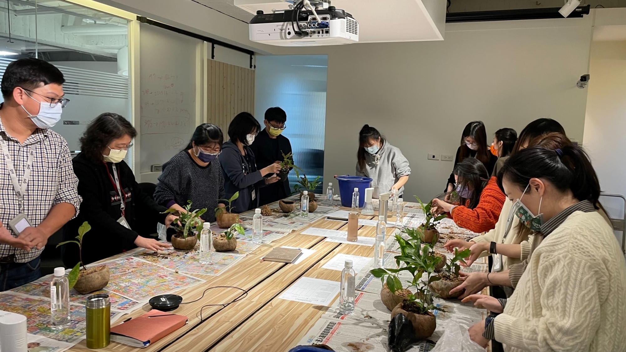 活動邀請台灣原生植物協會 陳世揚老師帶領大家利用椰殼創作盆景