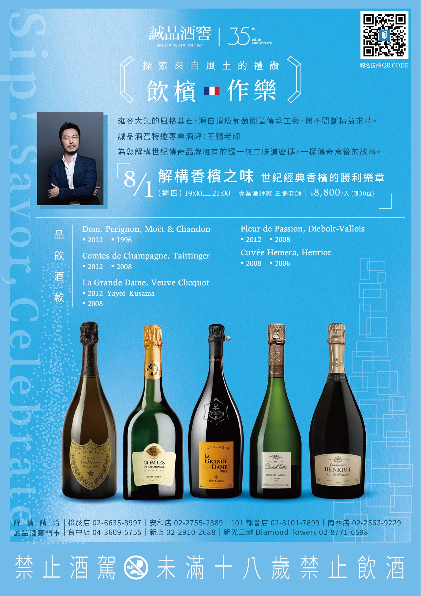 - 主講者與主題: 王鵬老師【解構香檳之味:世紀經典香檳的勝利樂章】