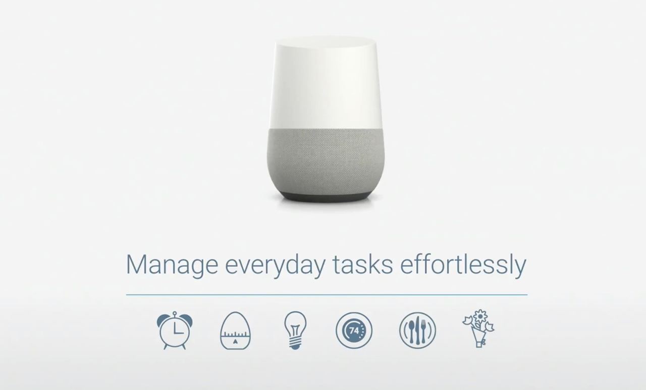 Google於2016年所推出的Google Home內建智慧家庭系統Google Assistant,具備打電話及放音樂功能,也能聽候主人差遣。未來預計增加報時、報天氣,為行事曆加上排程的功能。利多的點是未來能結合Google多元的應用,讓使用者達到便利生活新境界。