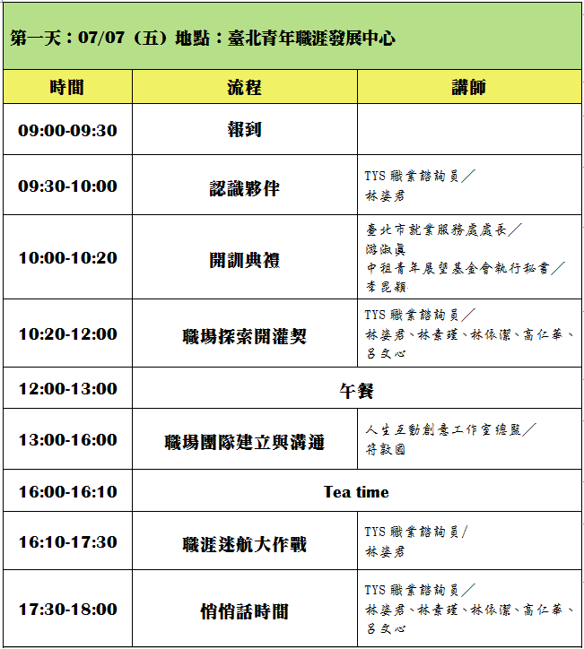 營隊時間:7/7~7/9 (共三日,未過夜)