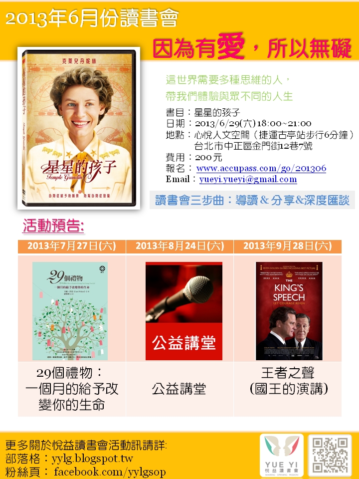 3) 活動時間為2個小時,不提供晚餐,提醒書友先提早用餐哦!