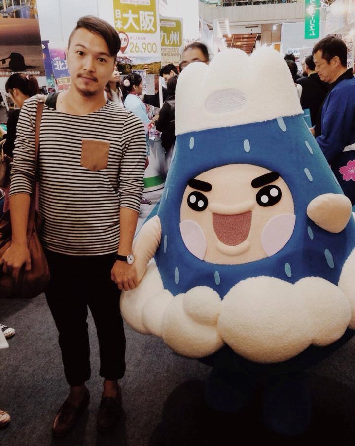 台北國際旅展現場靜岡縣的「富士山」吉祥物&創作者施愛桑合照。