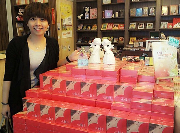 圖說:祐祐與自己創作的心願卡,熱賣中!意者請洽藝起玩耍吧。