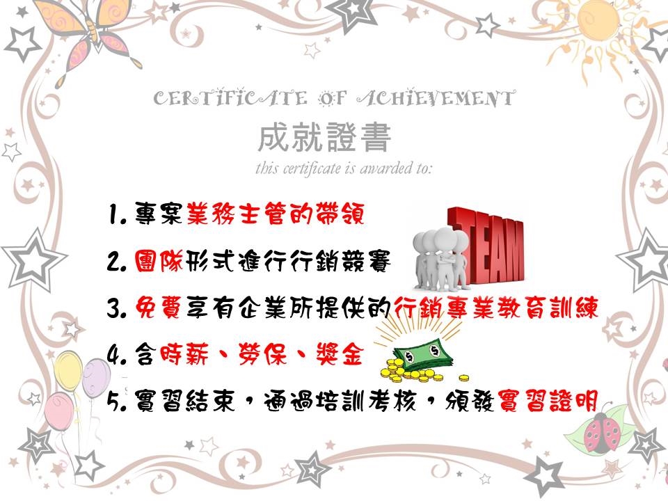 甄選地點:台中辦公室 (臺中市北區雙十路二段101號4樓之6 )