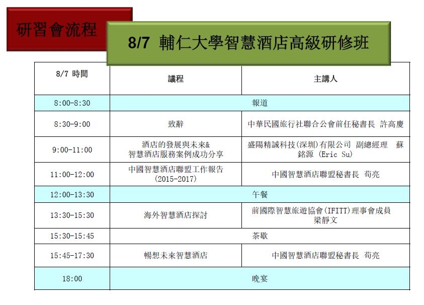 8/7高級研修(封閉式實務交流研修班 / 限額30名需大會審核或邀請)