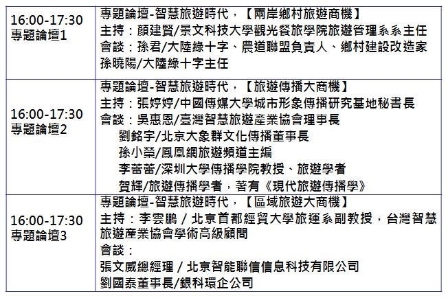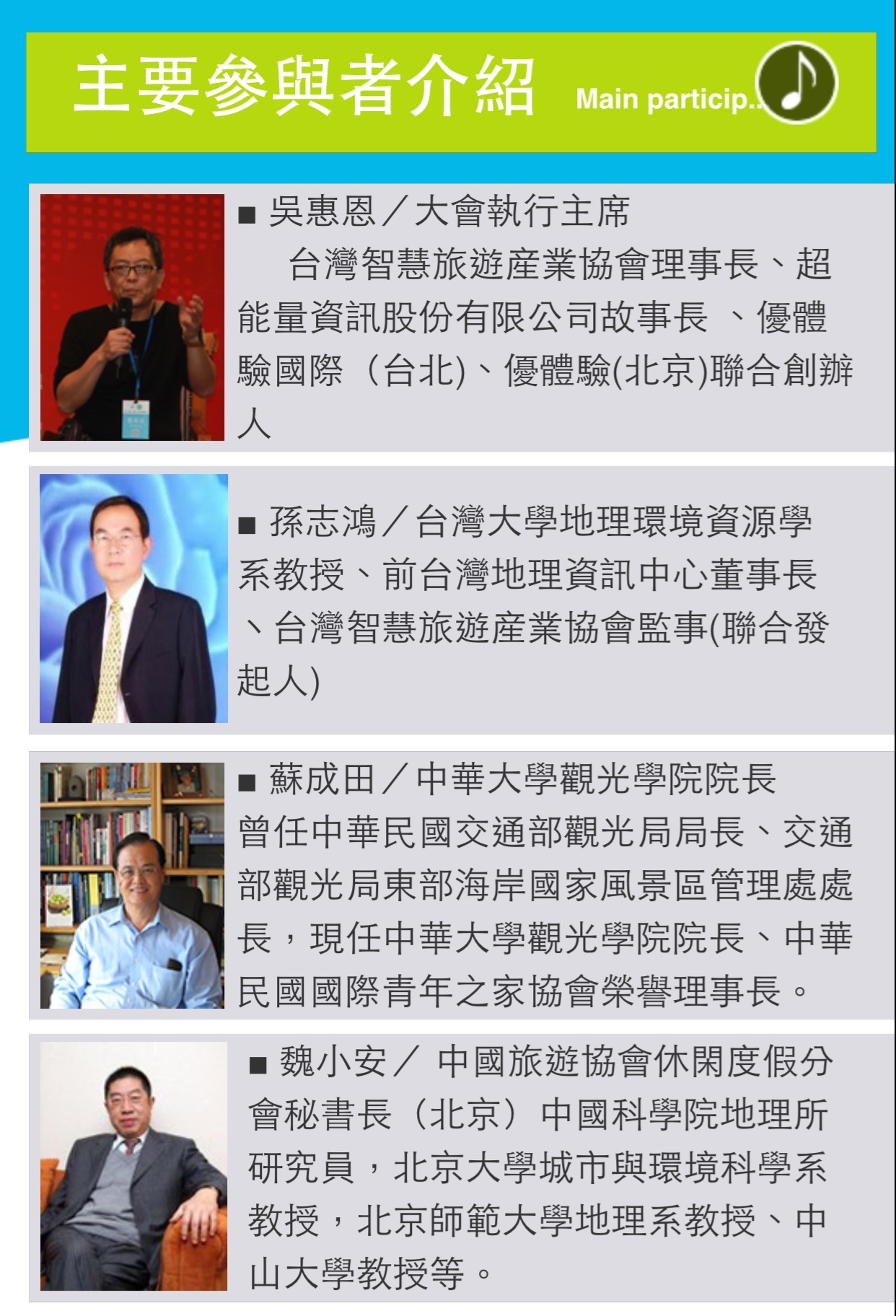 論壇,由臺灣智慧旅遊產業協會(TITIA)、臺灣觀光休閒健康管理學會、輔仁大學、東南科技大學、中華大學聯合主辦,以智慧旅遊來自旅遊智慧為訴求切入,以兩岸合作為本次大會主題,展現諸如鄉村、文創、教育、智慧酒店等多元主題,邀請兩岸產、官、學人士參與探討智慧旅遊最新發展趨勢、分享研發成果,集兩岸大學師生對智慧旅遊的行程設計、行銷設計產品設計等,一方面展現大學教育成果,另一方面也可促進兩岸學術與教育交流,更為旅遊界尋找人才,為創投業找創業投資標的等,「兩岸合作」與「育才創業」是本次大會兩大亮點!