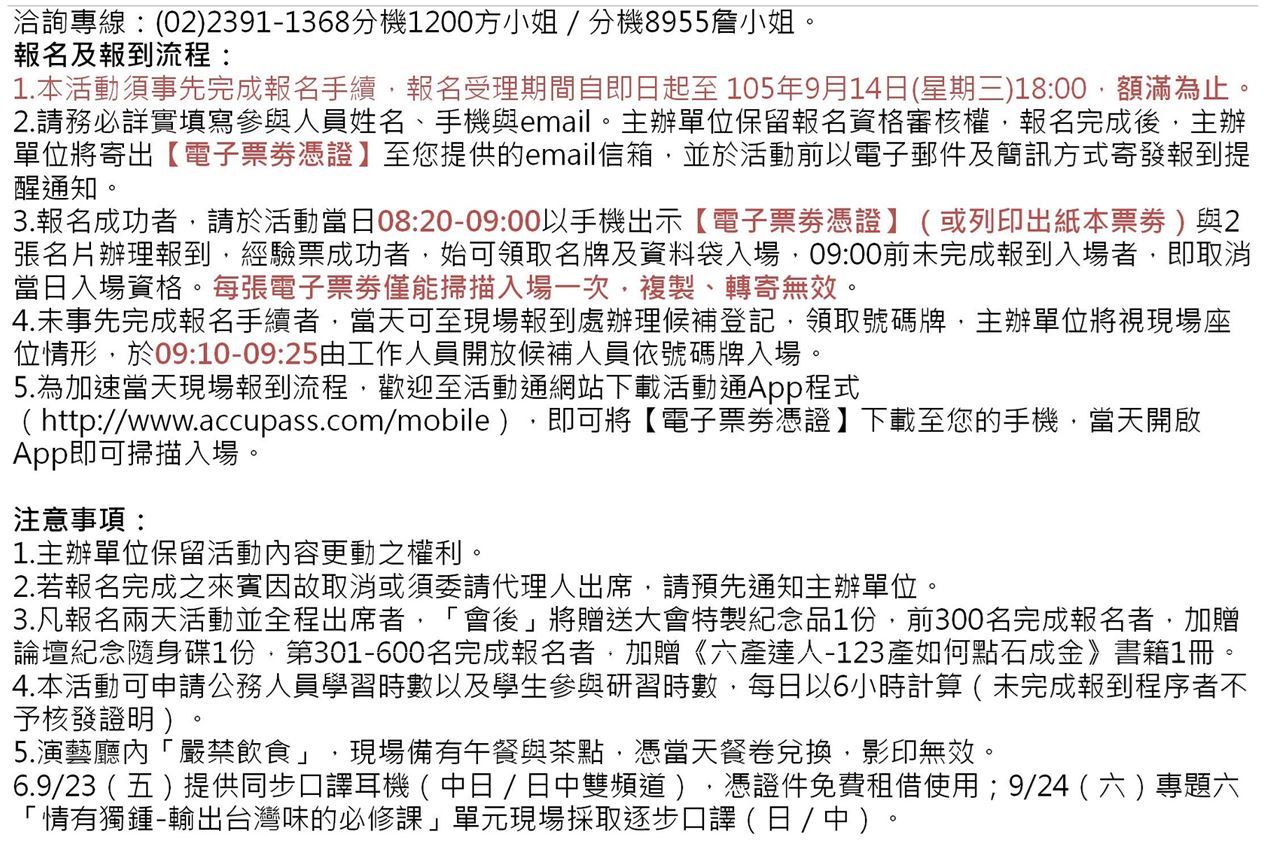 - 活動時間:2016/09/23(五)09:00-17:30;09/24(六)09:00-17:30
