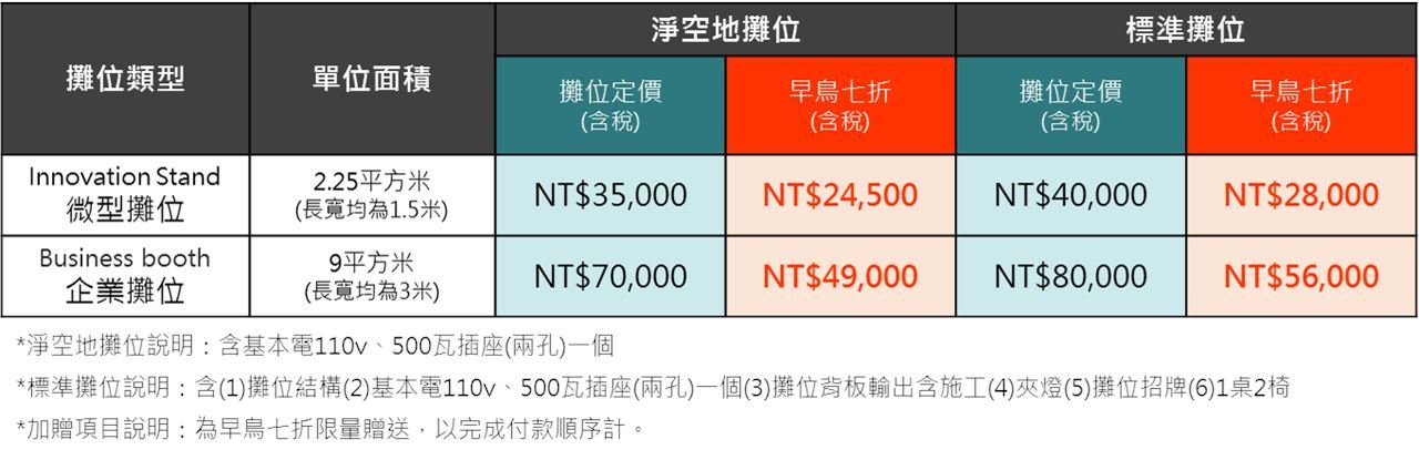 3. 限量優惠攤位,經審核通過後,方可享參展最優惠價。主辦單位保留參展攤位最後審決權。