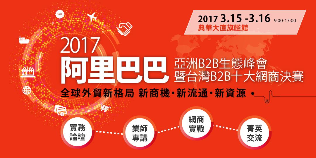 | 16:25-16:40 | 頒獎:2017阿里巴巴B2B台灣十大網商1-3名 | |