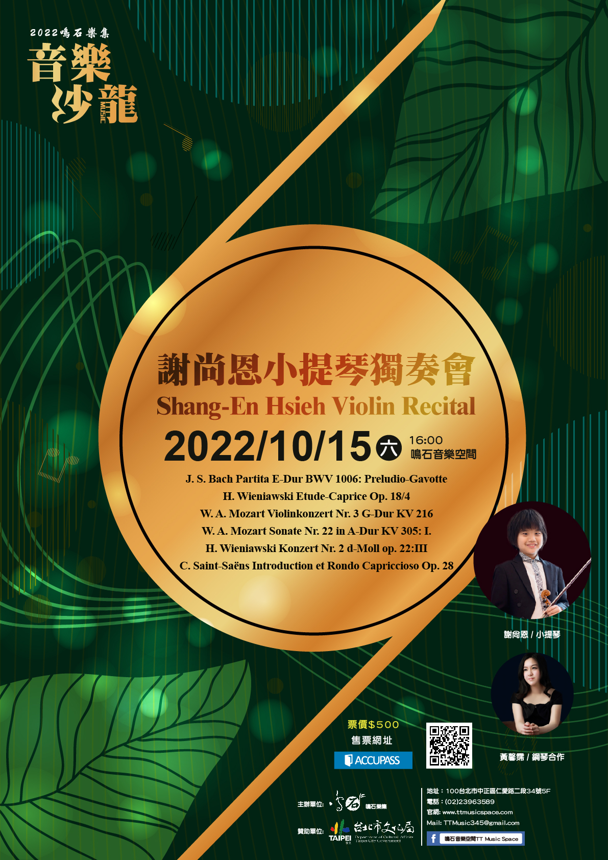 2018年開始拿下國內外比賽8-17歲鋼琴獨奏及小提琴獨奏獎項,包括新加坡"Brilliant Talent Discovery Awards"國際音樂大賽、奧地利"Classic Pure Vienna"國際音樂大賽、大阪國際音樂大賽小提琴第一名,比利時”Merci, Maestro!”國際鋼琴大賽、德國"MozARTe Aachen"國際鋼琴大賽、Elevato Piano國際青年音樂大賽鋼琴第一名,義大利米蘭“Piano Talents”國際鋼琴大賽絕對第一名及特別音樂會演出獎、台灣絃樂團小提琴第一名及波蘭Wieniawski國際青少年小提琴大賽第四名。此外,在美國"Golden Classical Music Awards"國際音樂大賽、奧地利"Danubia Talents"國際音樂大賽、"Salzburg Grand Prize Virtuoso"國際音樂大賽,義大利"Città' di Barletta"國際音樂大賽都贏得鋼琴和小提琴的雙料冠軍。奧地利“VIENNA NEW YEAR’S CONCERT”國際音樂大賽贏得鋼琴組和小提琴組傑出青年藝術家獎。