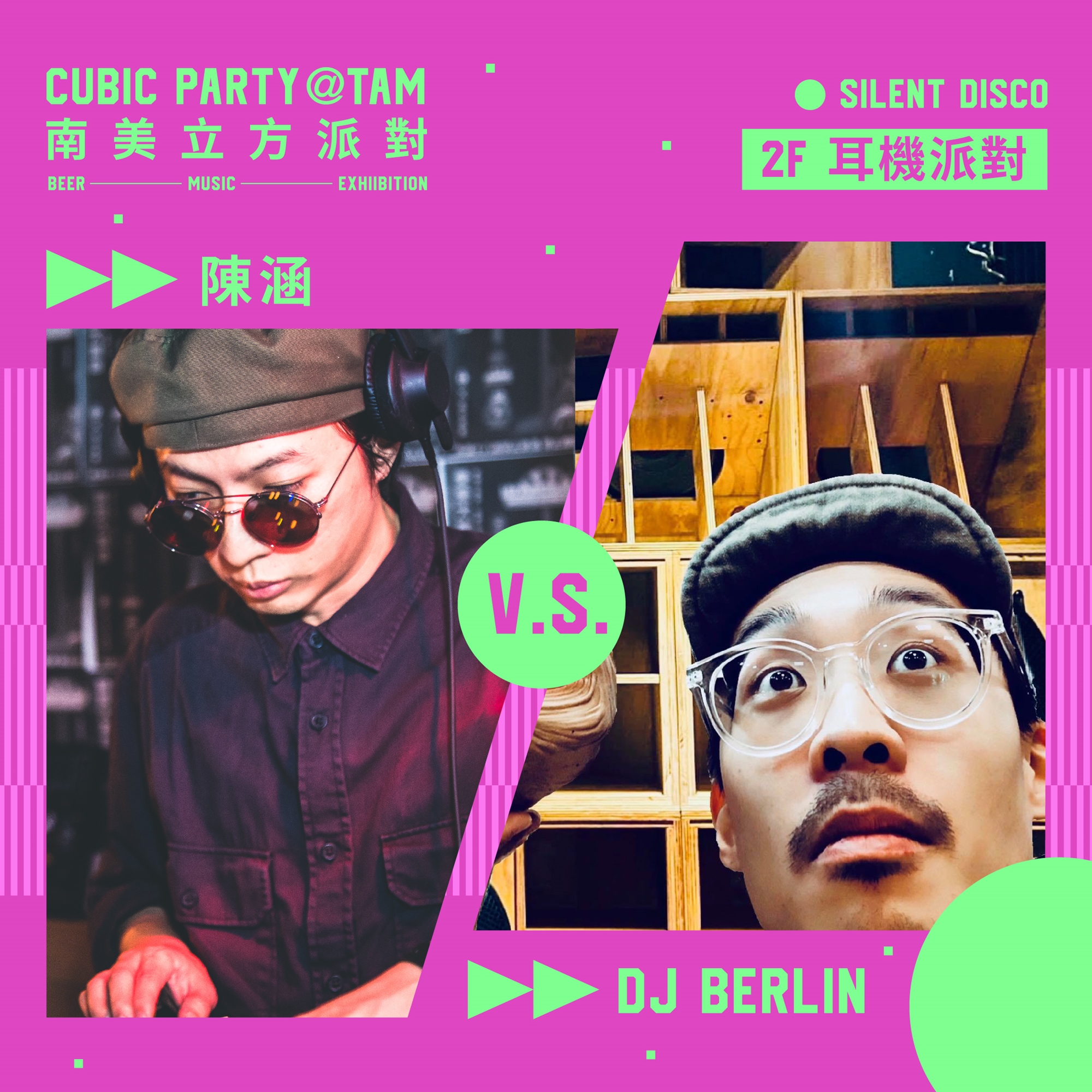 這次 Silent Disco 壓軸,由選曲範圍極廣,律動滿溢的陳涵與 DJ BERLIN 擔綱。選樂總是緊貼著主題的陳涵,Drum n Bass老手DJ Berlin,這是一場經驗與技巧點滿的對決,最後一小時,一定把舞池能量衝到最高。