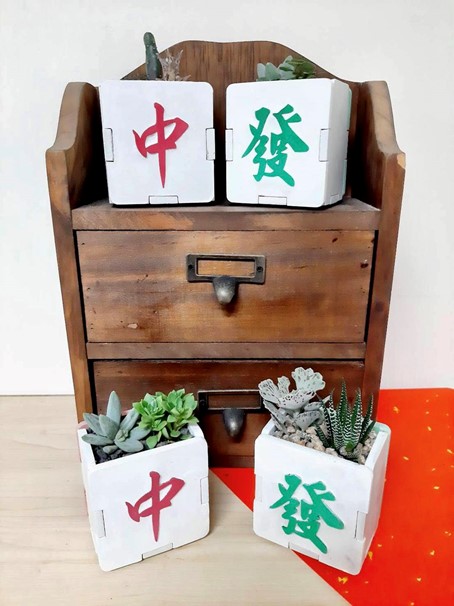 參與的學員可親手組合設計自己的好運麻將水泥盆栽,亦可調配不同染料配色,再挑選喜愛的多肉植物,結合傳統麻將遊戲文化與盆栽養護技巧,學習簡單而有效的設計要點,如對比色彩、層次感和平衡感,以確保盆栽的視覺效果與寓意相符,為參與者帶來一場有趣而獨特的體驗。