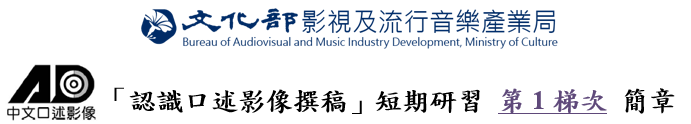 - 報名時需詳實填寫中文姓名及個人簡歷等資料。報名者得自行另以電子郵件提供個人簡歷或經歷證明等補充資料:請於網路報名期間將電子檔案寄至rwzj003@gmail.com,主旨請寫明「報名認識口述影像撰稿短期研習第一梯次+姓名」)
