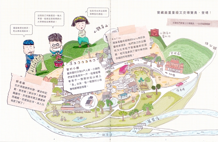 A:內有三本讓你更了解的寶藏巖詳細介紹手冊,搭配可愛特別的繪圖,三本手冊分別為:劉克襄老師走訪寶藏巖探索大自然、經典電影場景介紹以及深度導覽解說,超優質的~