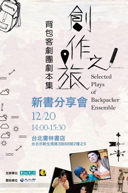 本次新書分享會,背包客劇團與出版本書的書林出版社合作,敬邀各方愛書、愛戲、愛旅行的朋友們相約於週日午後的書林書店,在歲末耶誕、新年將至之時,獻上暖暖的祝福與這本値得珍視的劇本書!