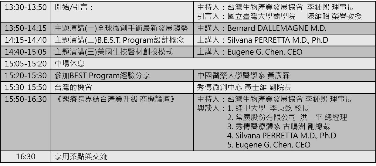 4.由重量級與談人共同討論台灣發展微創醫材方向,及如何結合BES