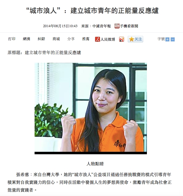 3. 中國青年報: 城市浪人:建立城市青年的正能量反應爐