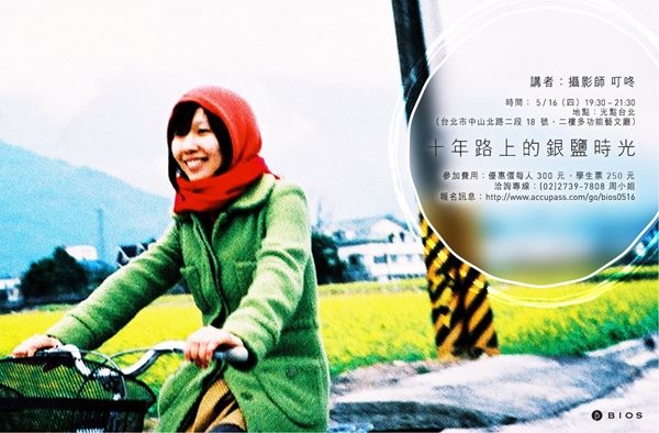 5 月 16 日,來聽叮咚分享按快門與快門之外的事,與他一同回顧這十年路上的美好銀鹽時光。