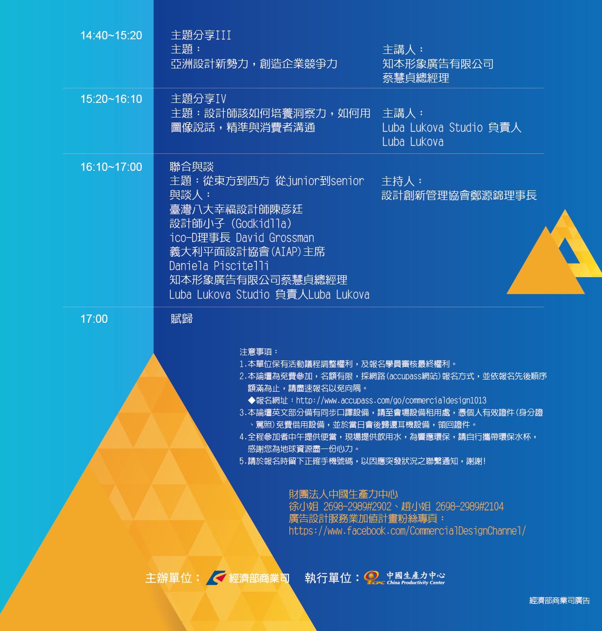 2. 本論壇為免費參加,名額有限,採網路(accupass網站)報名方式,並依報名先後順序額滿為止,請盡速報名以免向隅。