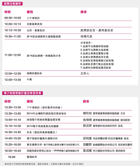 還有公佈2014最新臺灣B2C網路經營調查結果,華文跨境經營分享等多場精采演講。