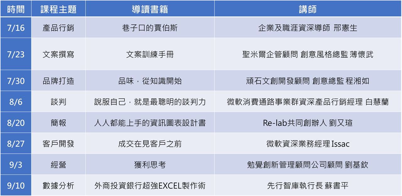 2. 全方位能力培養:主題從職場技能、未來趨勢到健康生活無所不包,讓學員在培訓課程後,在變動的未來中取得優勢!