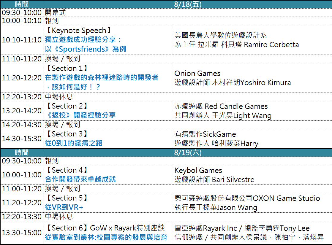 開幕交流會:8/18(五)09:30~10:00 頒獎典禮:8/18(五) 17:00~18:00
