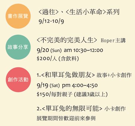 展覽期間皆歡迎前來,畫畫塗塗寫寫字,和單耳兔說說話