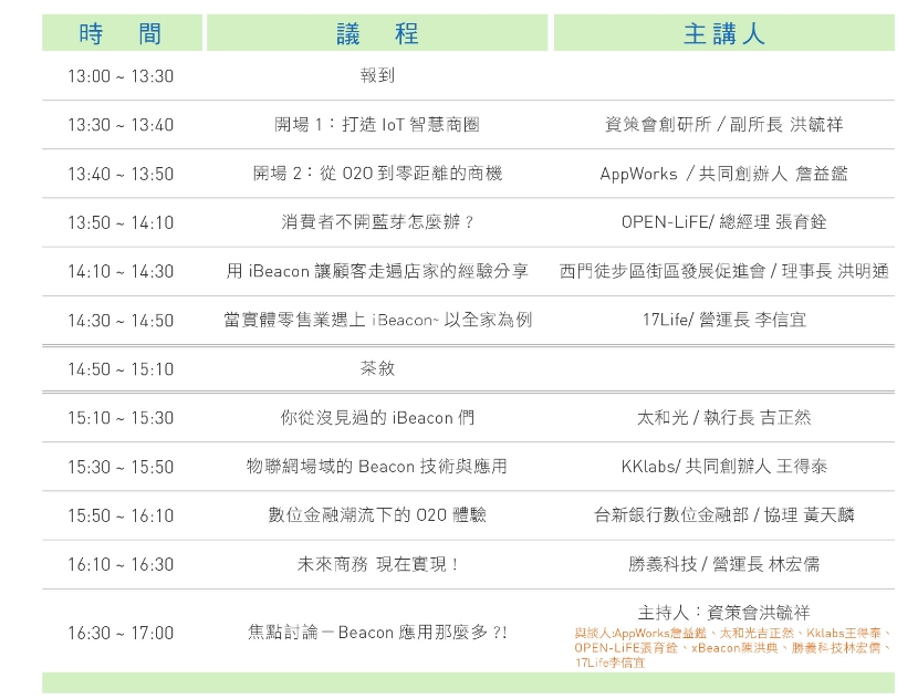本次由資策會創新應用服務研究所與AppWorks共同舉辦「為你敲開智慧商務大門-Beacon創新應用研討會」,期待透過業界交流分享,探討更多Beacon創新應用,進而帶動台灣智慧商務更蓬勃的發展。