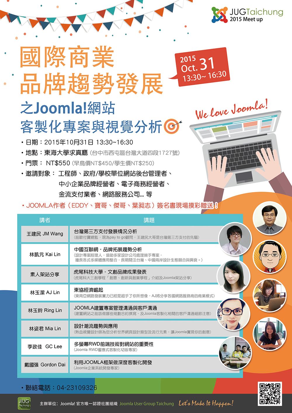 為慶祝Joomla 10 周年,Joomla Taiwan 舉辦北中南聚會活動,中部由 JUG Taichung 主辦,歡迎中部的朋友一起來共襄盛舉到現場和各領域的人士交流經驗。