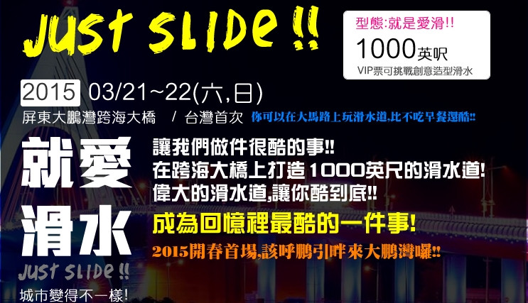 本活動為Just Slide官方合作售票頁面,活動資訊請以Just Slide官方網站為主。
