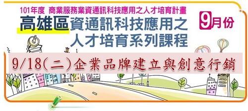 資通訊科技應用之人才培育系列課程 9/18(二)企業品牌建立與創意行銷
