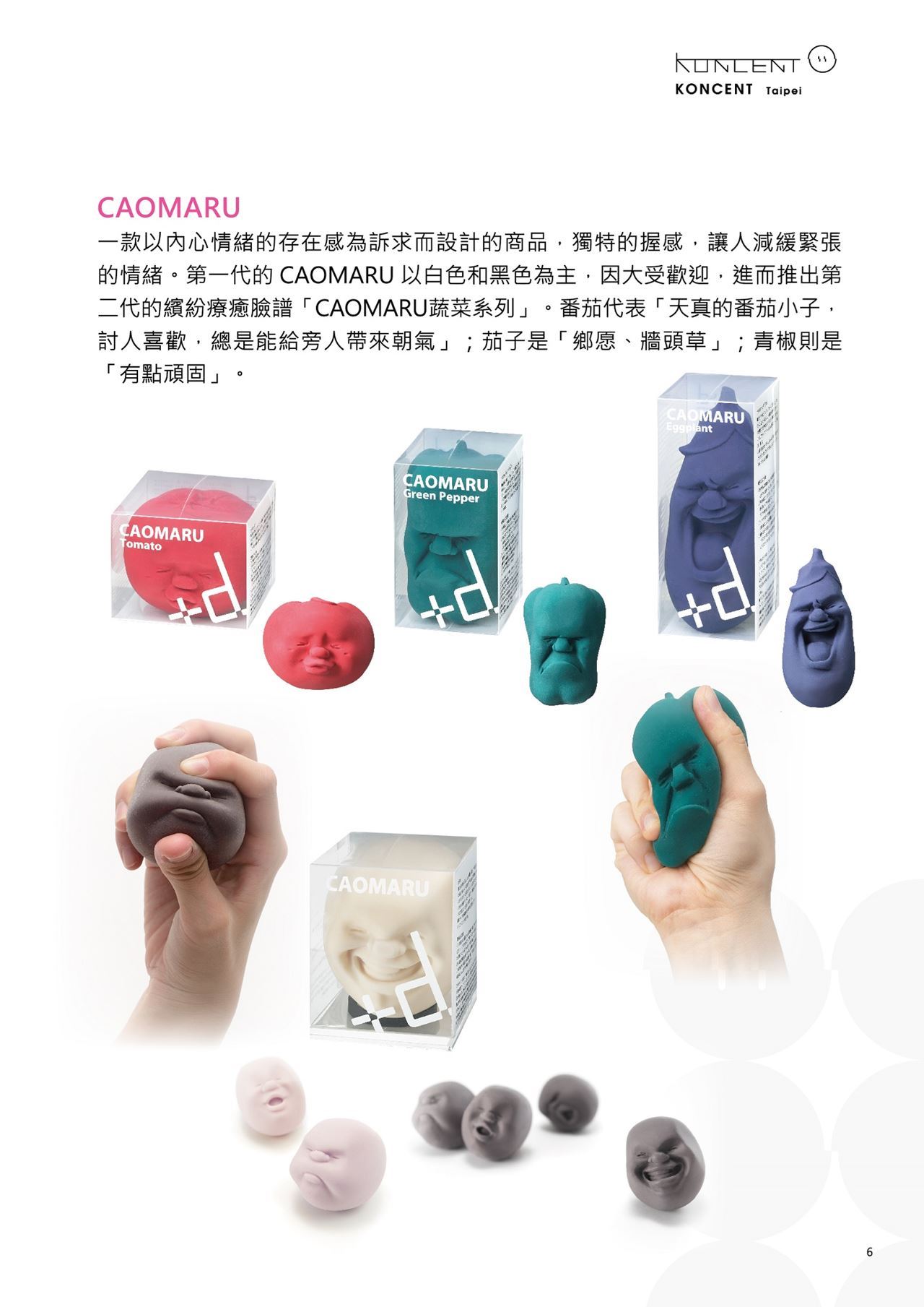 走訪松菸創意商品區,晃眼而過進入眼中的是色彩鮮豔呈現出許多動物的橡皮筋,怎麼綑綁、拉扯,都能完好的恢復原樣,不可思議的「動物矽膠橡皮筋」,熱銷全世界 ; 等待泡麵的時間,出現死命壓住泡麵蓋的詼諧逗趣「杯麵人」,只要一受熱指尖就開始變白,提醒泡麵好囉!舒緩緊張的情緒,一看到「CAOMARU蔬菜臉」,獨特的握感,不禁讓人想去捏一把。