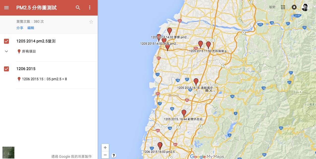 由社群進行測試的PM 2.5分佈圖: