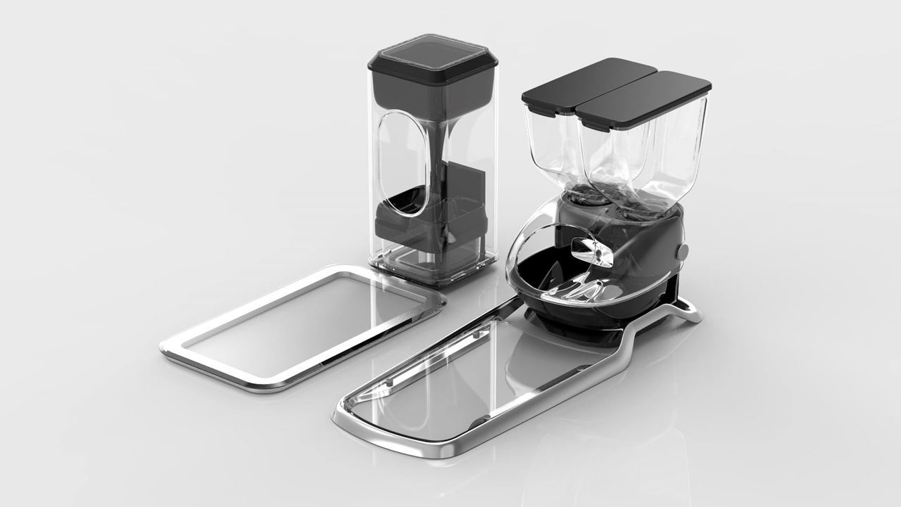 再舉個例子,CatFi在完成產品原型(如下圖左)時,在群募平台募得大量的資金,因而開始尋求開模的合作廠商,但因為其作品的機構設計較為複雜,所以模具的開模費用報價下來竟遠遠超乎預算。在簡化、採用共模的方式重新設計之後,去年度他們推出的改良作品(如右圖),與產品原型形成非常大的對比。(圖片來源:CatFi粉絲專頁)