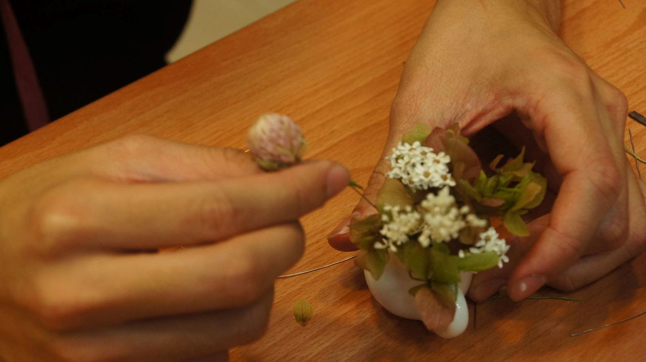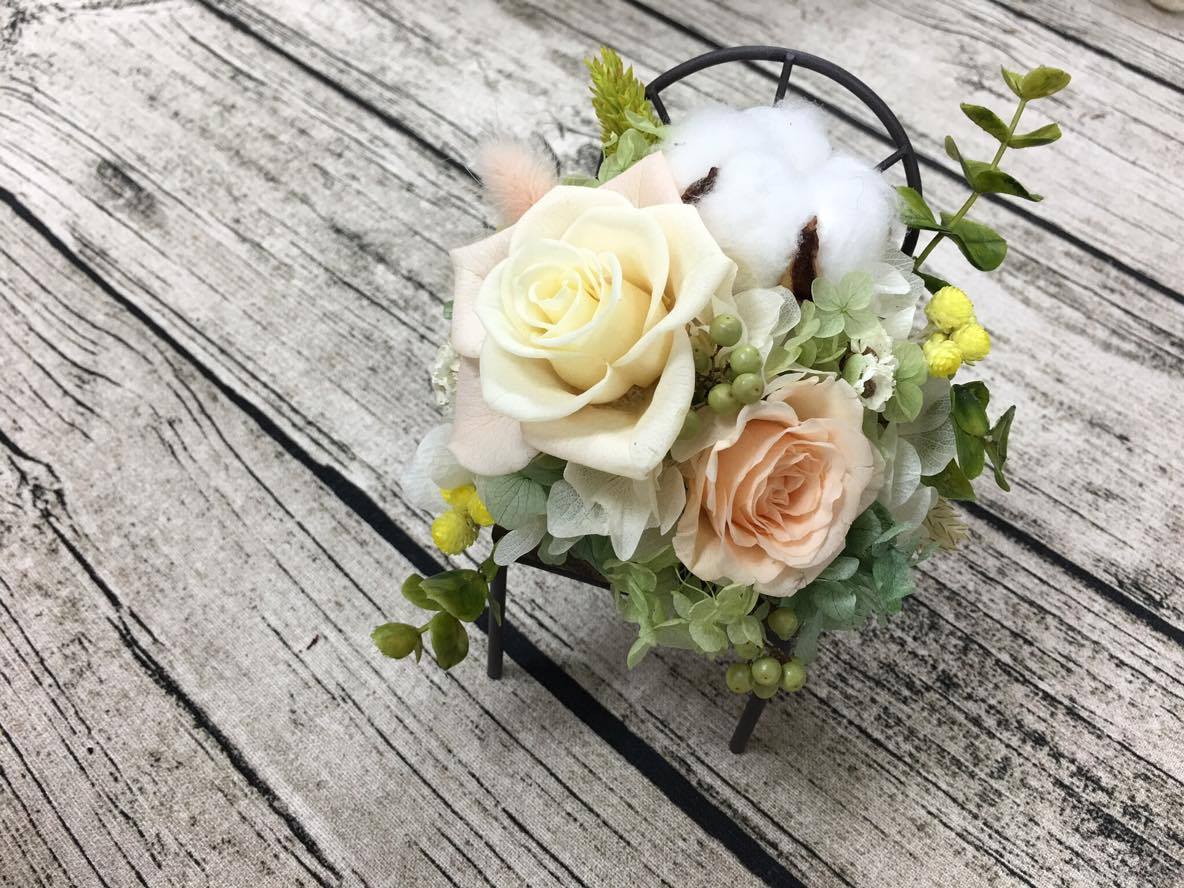 此作品將以不凋花材為主,搭配些許乾燥花材與人造花材來完成這個適合放在辦公桌、或居家角落的小花園留言夾。 課程裡將教授不凋玫瑰花開花方法以及鐵絲在花藝創作中的運用。我們讓學員各自發揮創意,尋找屬於自己的風格,完成一個溫暖、且可替您留下訊息的小花園。 以白、綠、黃與粉橘的色調搭配讓我們一同來完成椅子花園,期盼小花園的清新可替您稍微紓解辦公時或課業的緊繃。 作品尺寸:約 直徑 15cm / 高度 20cm |