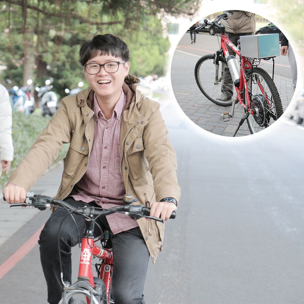在徐徐的微風下試乘最新研發的智慧節能自行車,幫自己減輕負擔也不造成地球的負擔。
