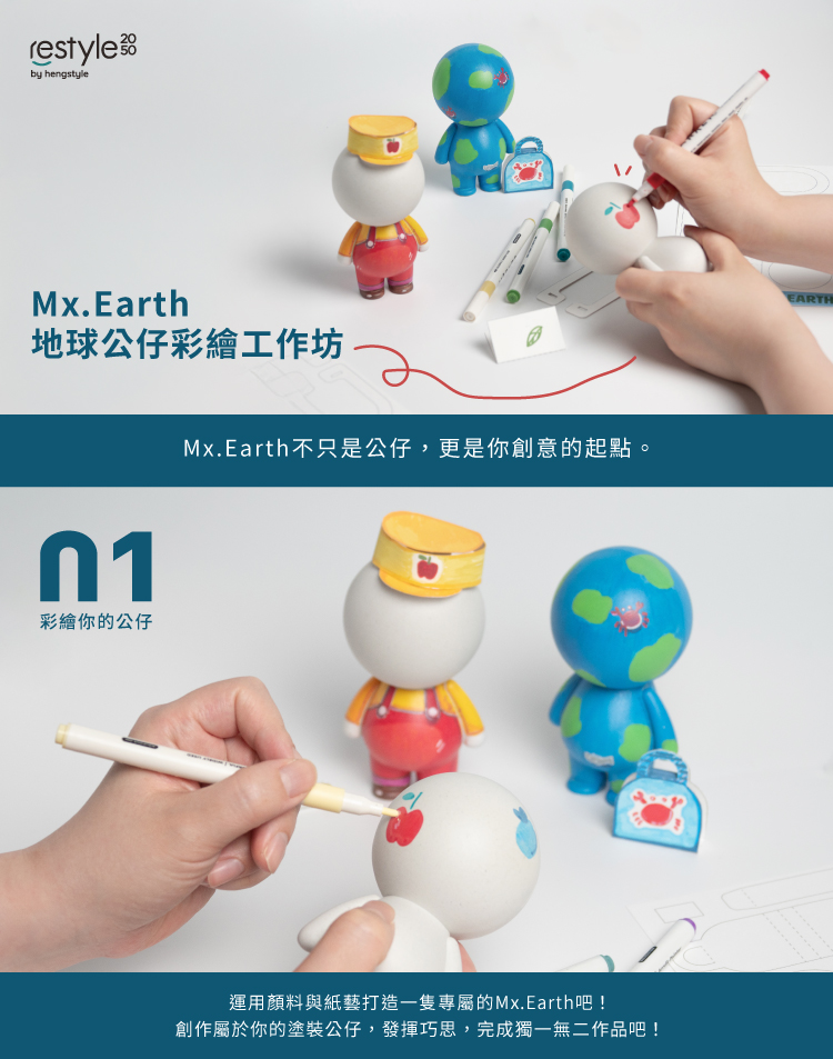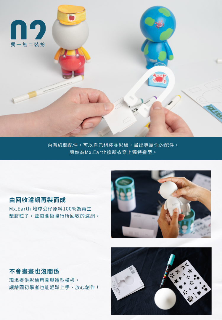運用顏料與紙藝打造一隻Mx.Earth吧!創作屬於你專屬的塗裝公仔,發揮巧思,完成獨一無二作品!