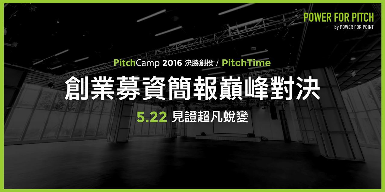 POWER FOR PITCH 將於2016年5月21,22日攜手三創育成基金會,在三創數位生活園區共同推出第二屆 PitchCamp。本次活動預計徵選12隻新創團隊,邀請國內外一線導師與教練傾囊相授,現場還有媒體及創投全程關注。培訓會從Pitch內容、簡報設計、表達呈現等面向提供全方位的專業訓練,以兩天一夜的形式為創業家量身打造新創簡報學校。