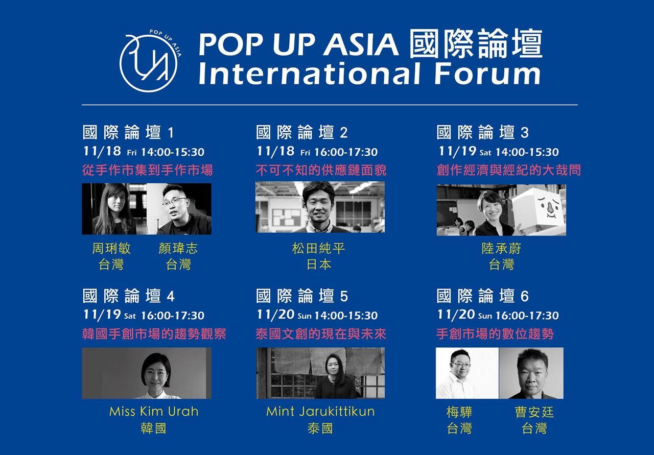 2016年11月17-20日,為期四天,在松山文創園區四號倉庫,即將展開以「亞洲手創」「城市策展」為核心主題的手作創業展。結集了來自亞洲七國、八個城市,包括:台灣、香港、韓國、日本、泰國等的手創品牌、手創組織、通路商,除了透過作品展現創意之外,也希望能夠透過第一屆的跨國經驗,將手創市場升級是更健全的商業環境。