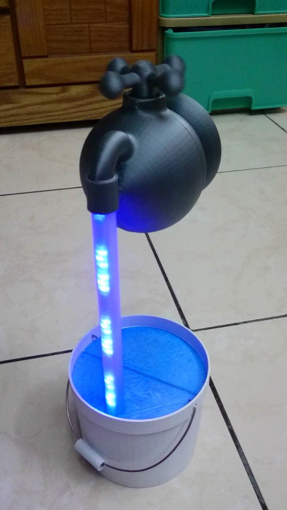與高雄第一科大的師生合作,設計出有趣的網站互動裝置。利用Arduino UNO和WiFi擴充板,串聯擷取FB粉絲專頁資訊,只要粉專上的貼文獲得按讚,3D列印的水龍頭就會被馬達帶動旋轉,而水流LED燈光也會閃爍對應次數,產生流水的聲光效果,趣味十足,尤其對辛苦經營社群網站的小編們來說非常療癒,畢竟每個粉絲按讚數都得來不易,這樣即時的互動反饋設計不只好玩,相信還能有效提升小編們的士氣!