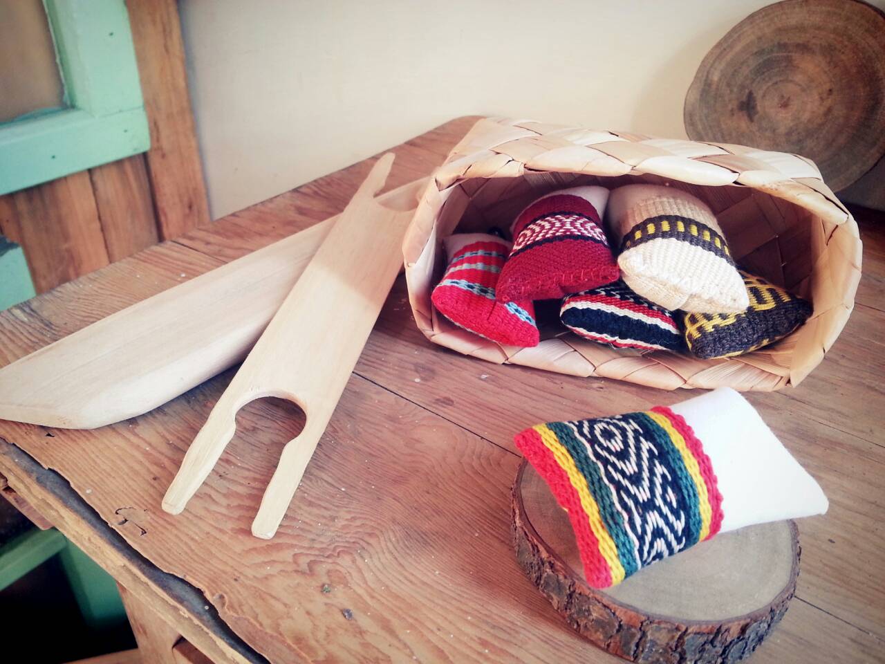 添加創作與新意,有織布、皮雕、口簧琴、串珠、月桃編織與木藝