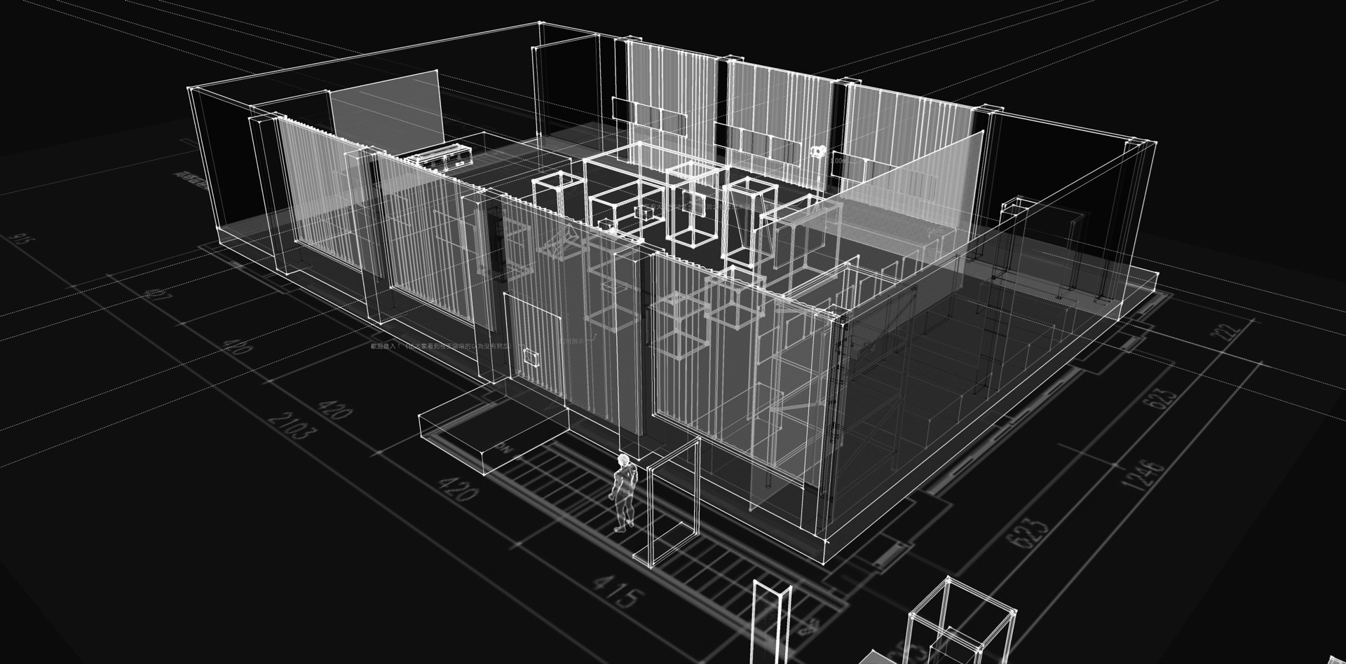 At the exhibition, the space is a giant camera; the viewers are photons suspending in the space. From the outside in, they go through light, scene, lens, aperture, mirror, focus, shutter, image sensor and finally imaging.