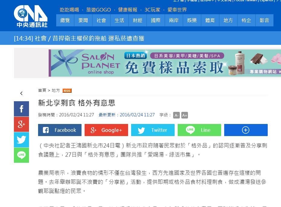 中央社:新北享剩食 格外有意思 「格外有意思」也邀請民眾加入利用「格外品」製作蔬菜濃湯與義式麵疙瘩,延續不浪費分享的精神,讓珍惜食物的提案持續發酵。