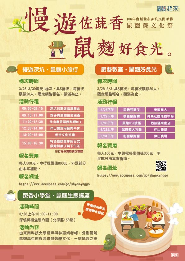 《漫遊深坑,鼠麴小旅行》 3/26-3/30,每天1梯次共計5梯次