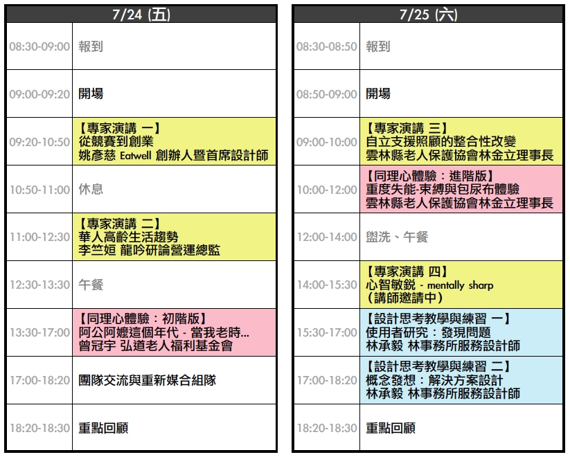 還有更多領域專家會親臨分享,精采可期,你怎麼能錯過本次「銀髮體驗與設計工作坊」!?