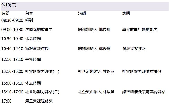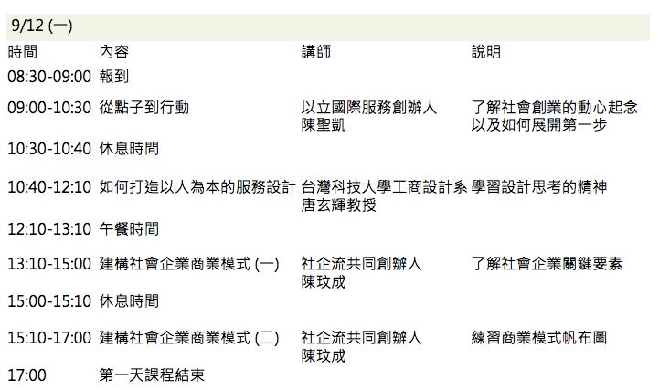 參加對象:社企領域實務從業者,或擁有創新想法的未來創業者